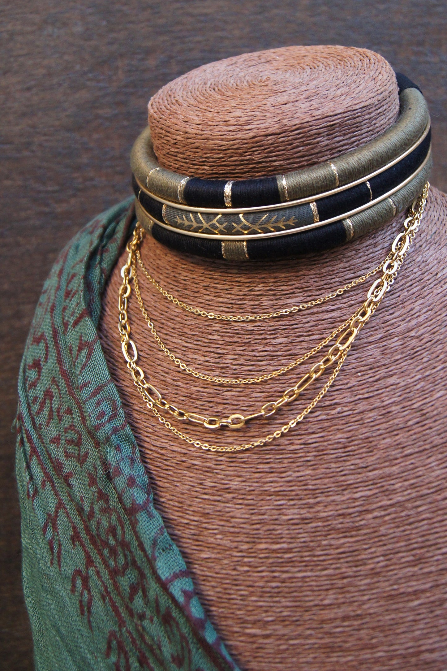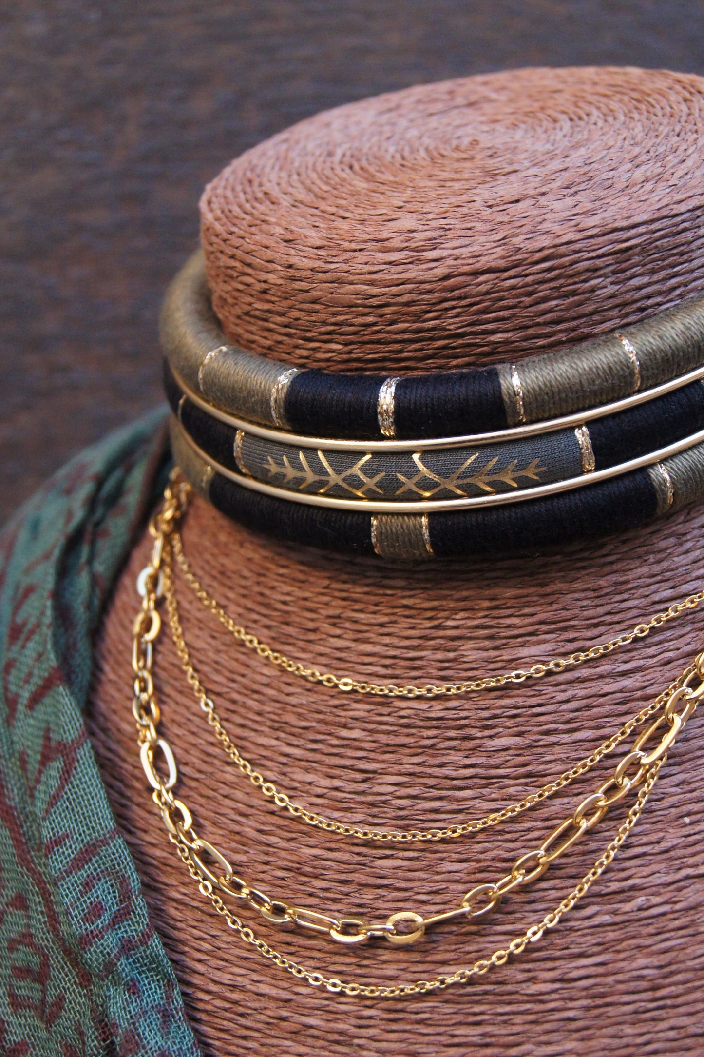 J'ai confectionné ce collier avec du fil 100% coton de couleurs noir, kaki ou beige.