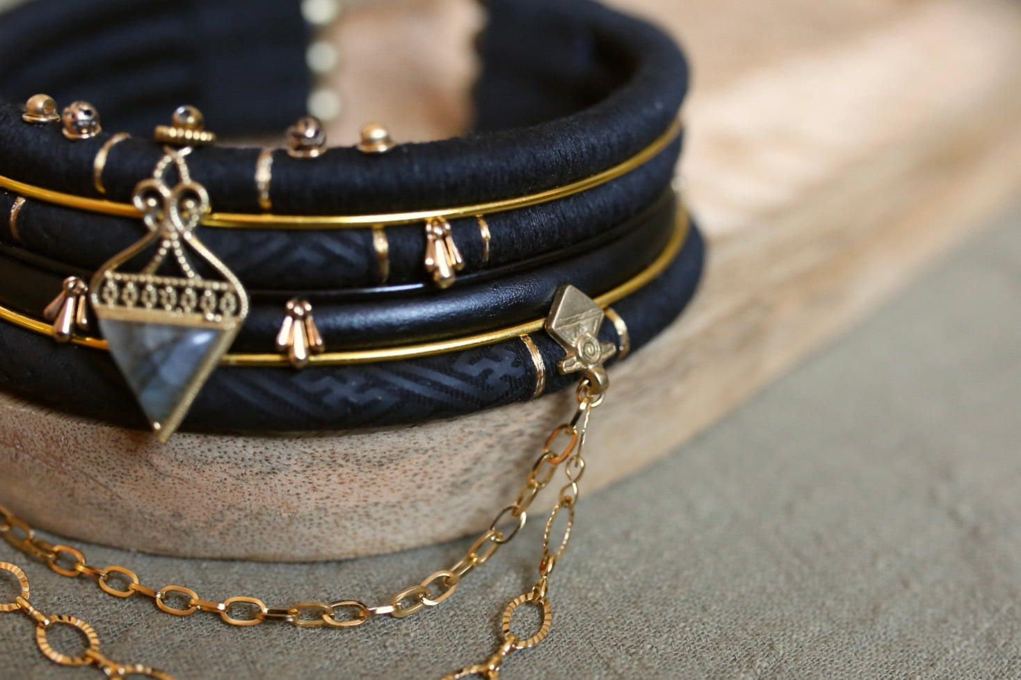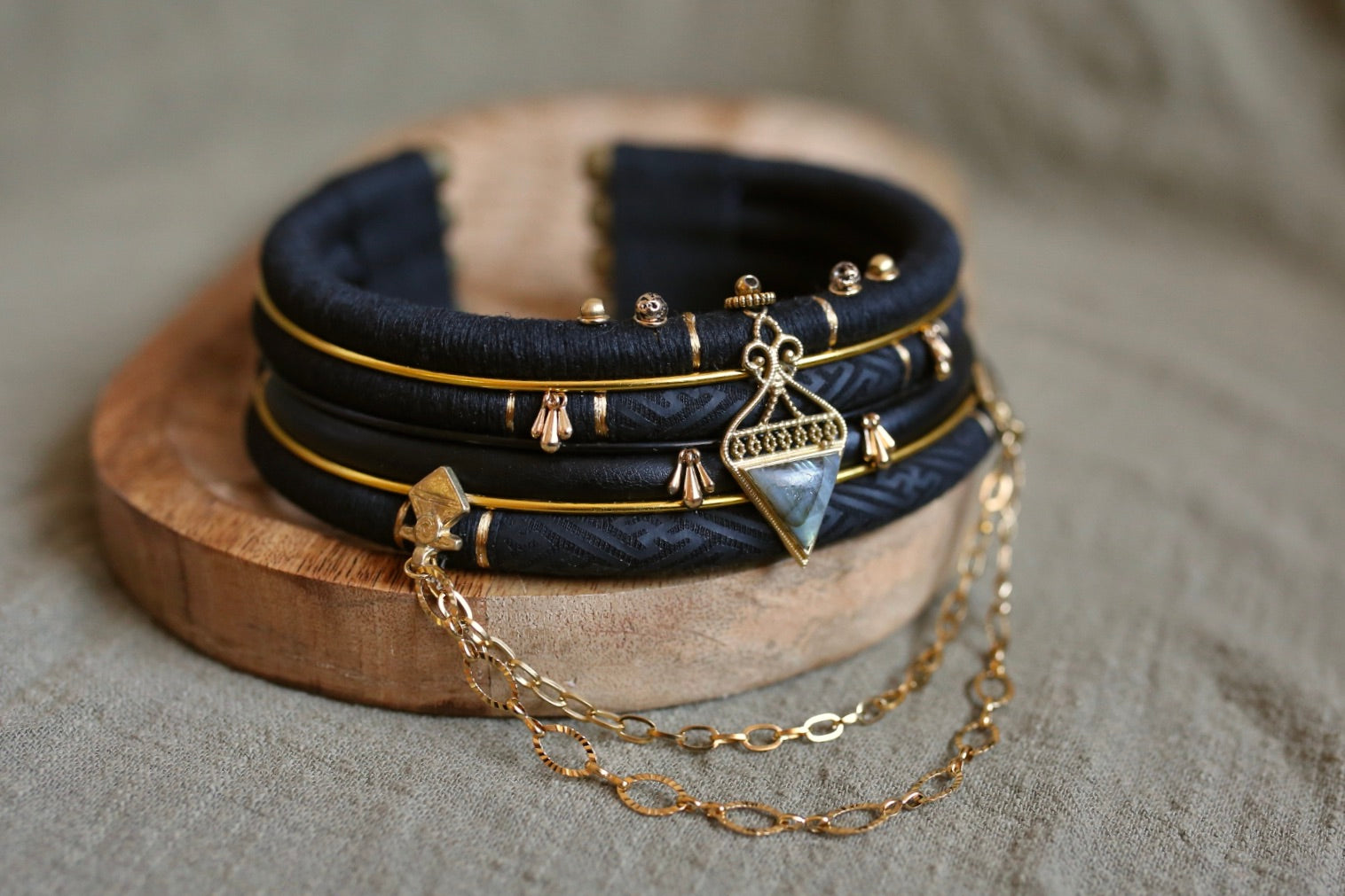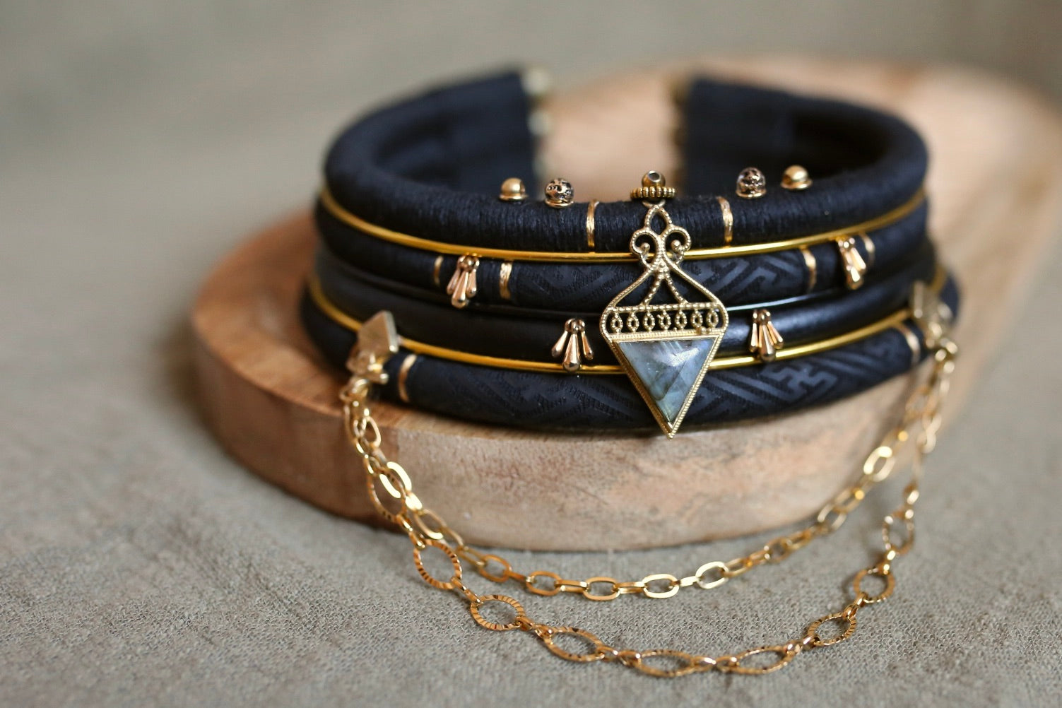 une chaîne en acier inoxydable dorée latérale pour un porté libre et asymétrique.