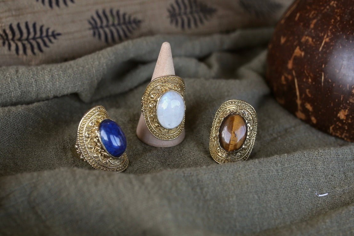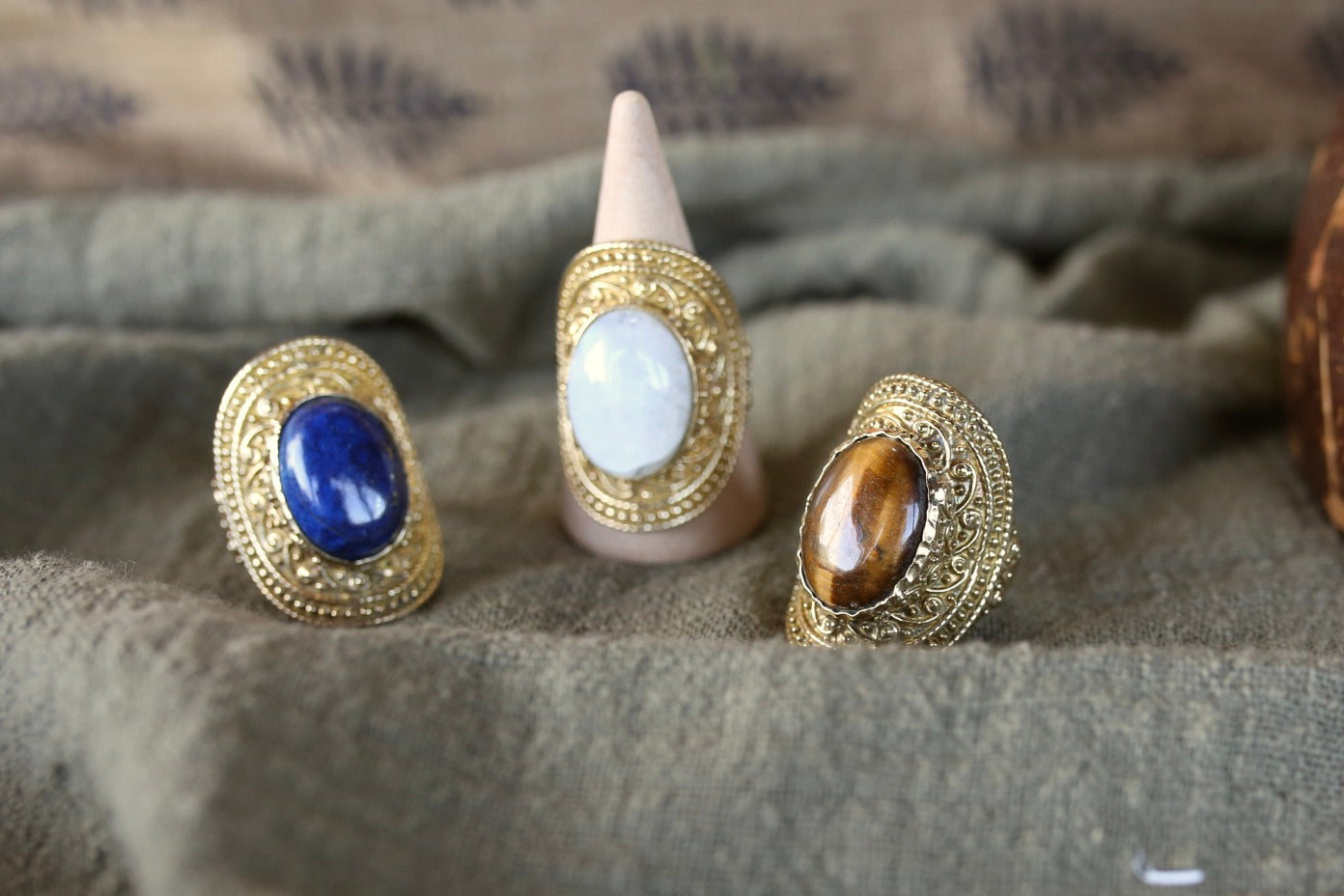 Matériau du produit : Grosse bague en laiton avec pierre au centre
