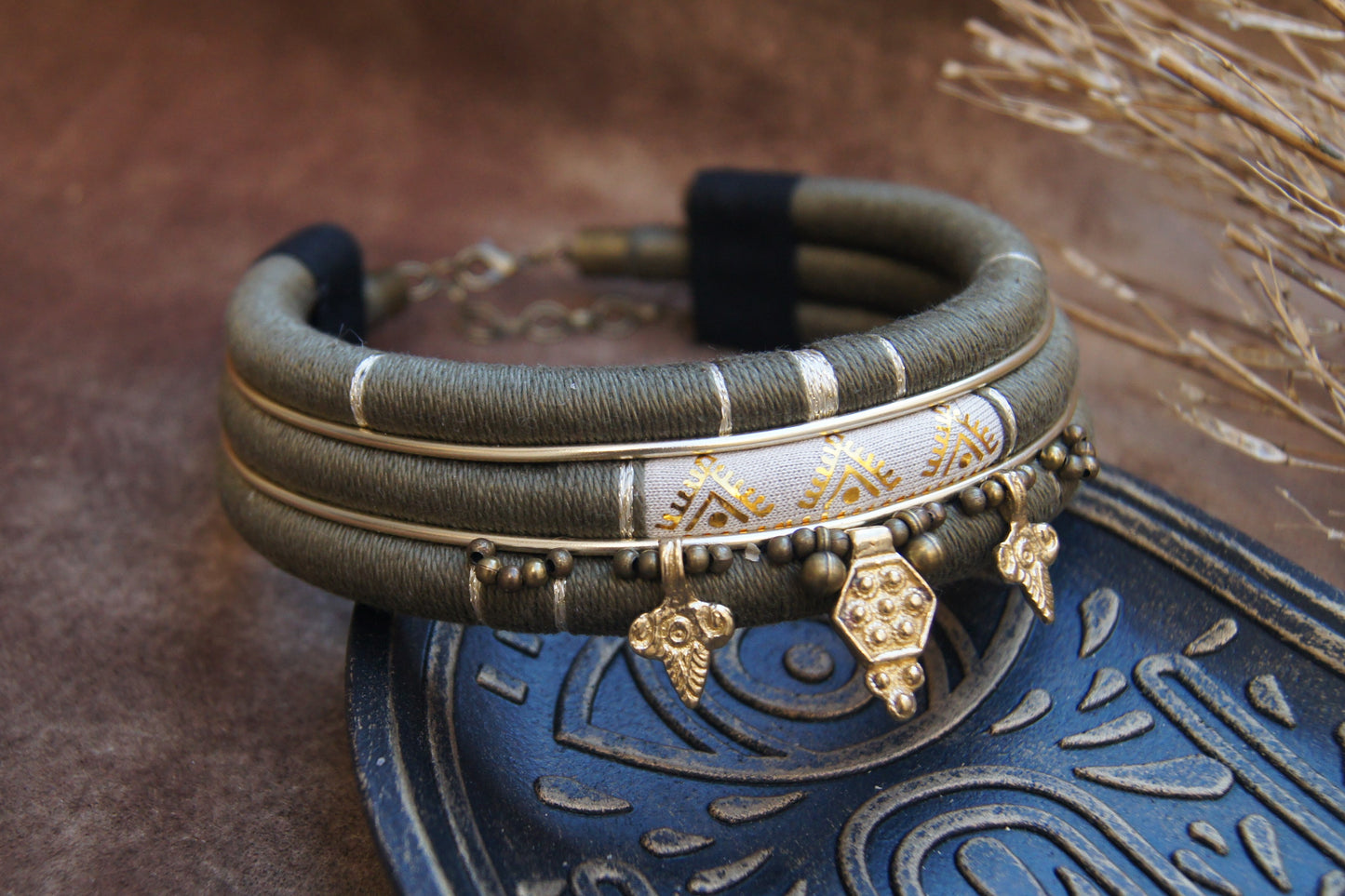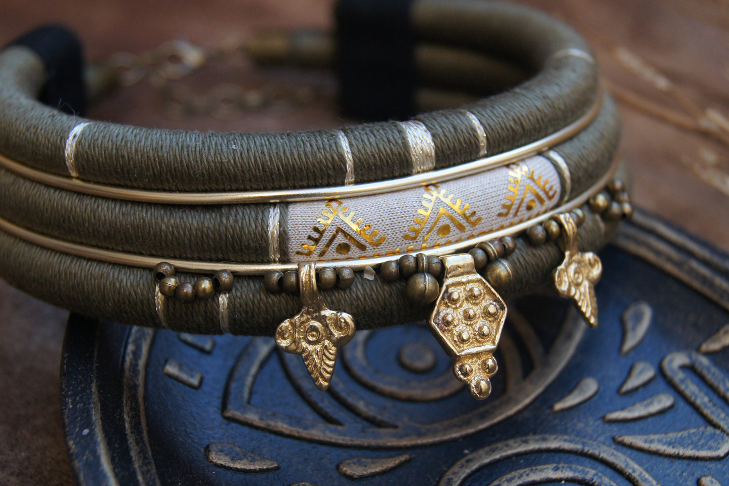 Inspirée des anciennes tribus berbères, j'ai ajouté de sublimes croix du sud et quelques breloques en laiton doré.