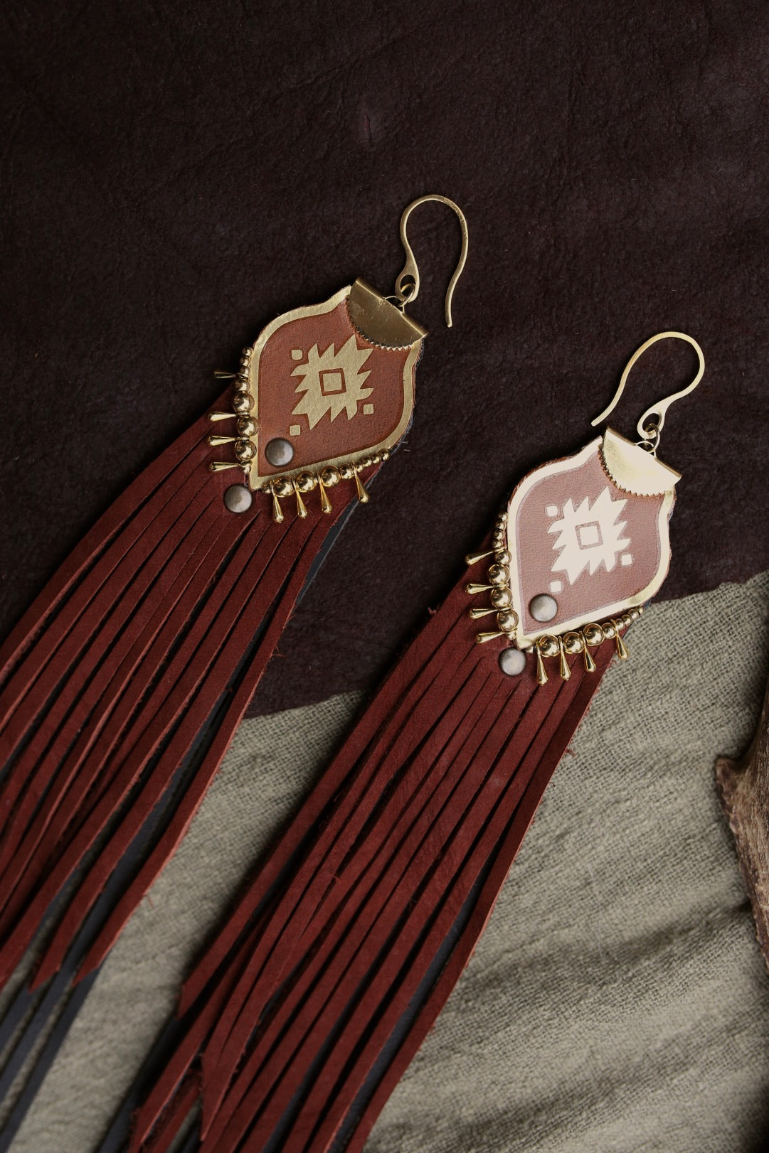 Boucles d’oreilles longues en cuir, montées sur une base en acier inoxydable, pour un porté durable et confortable.