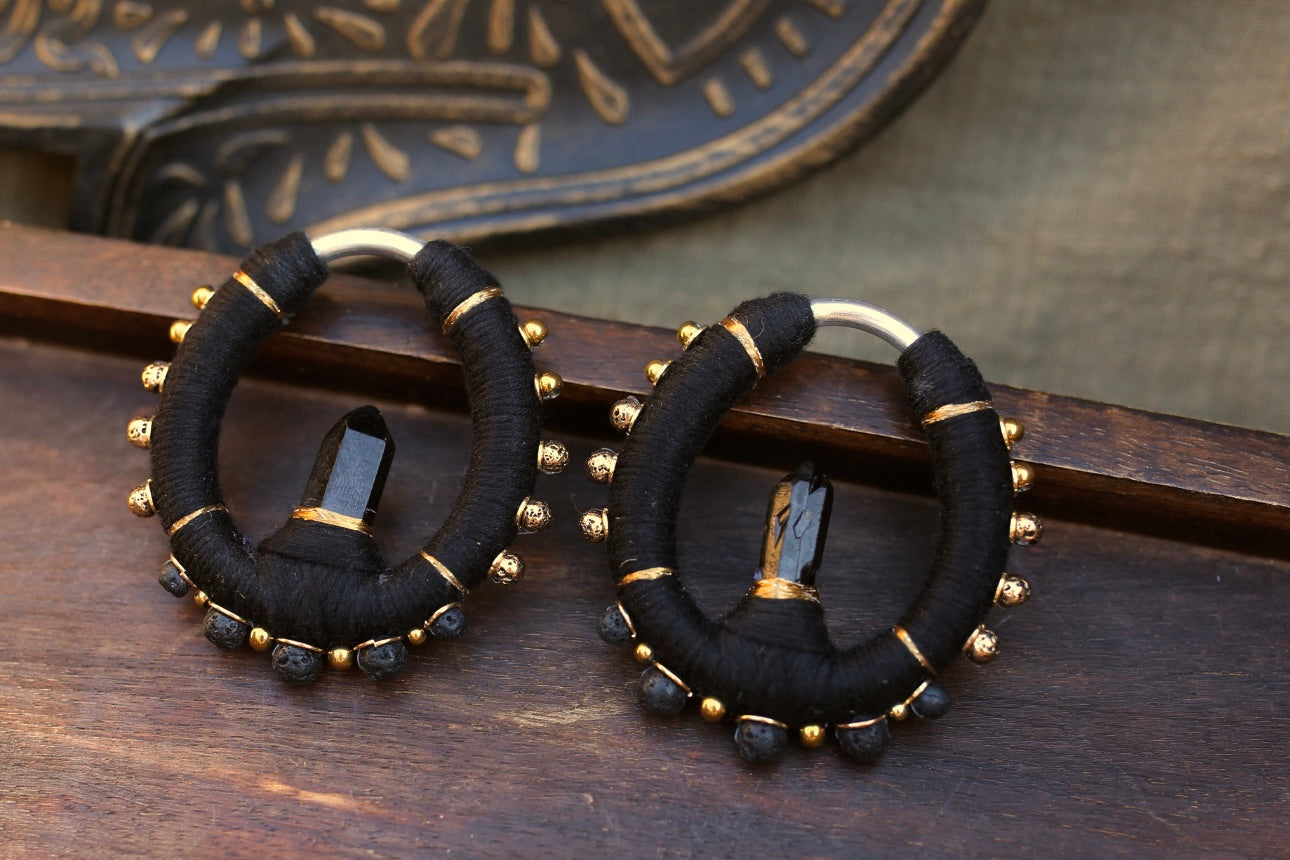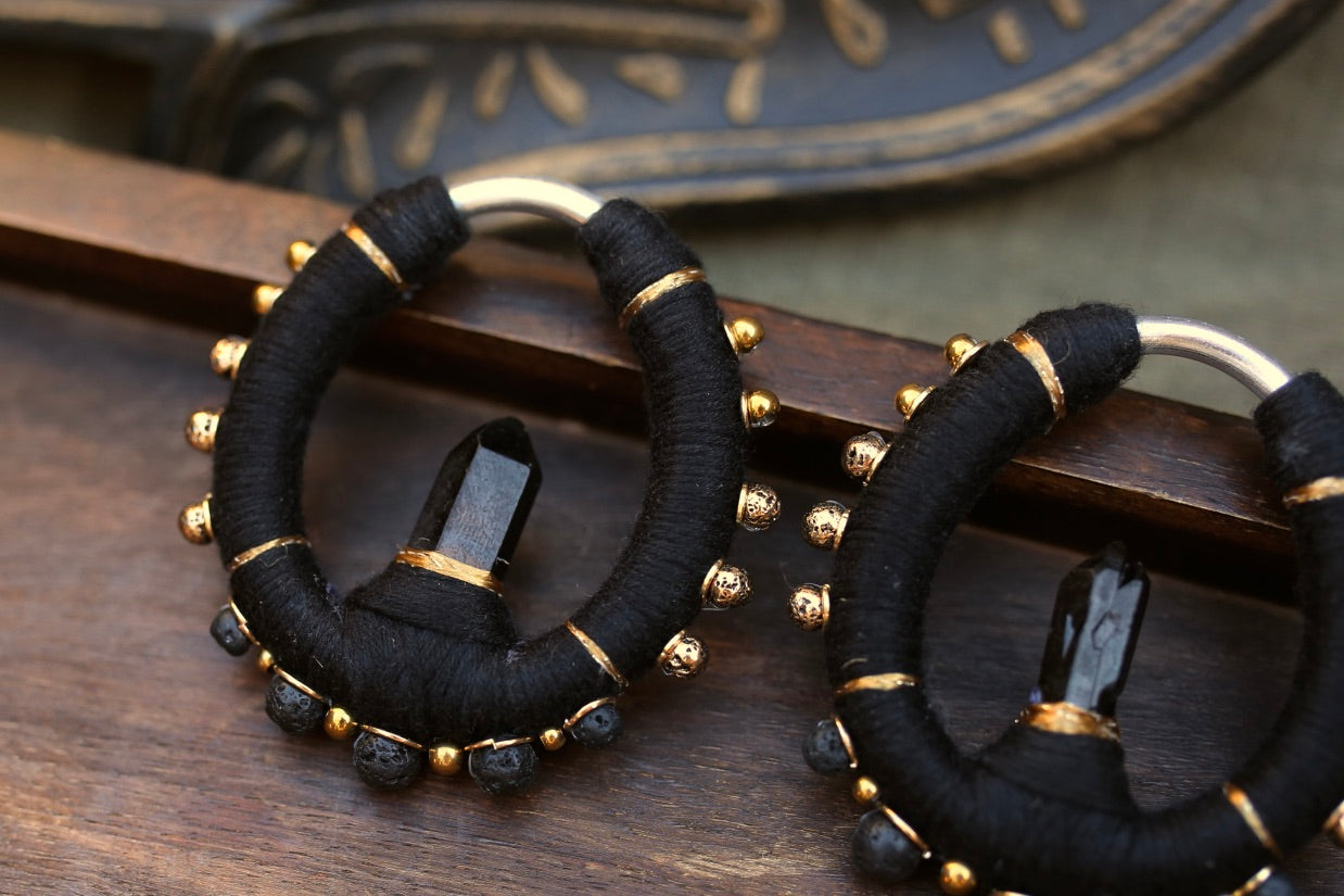 Poids d’oreilles pour lobes stretchés (minimum 5 mm), réalisés à la main avec :