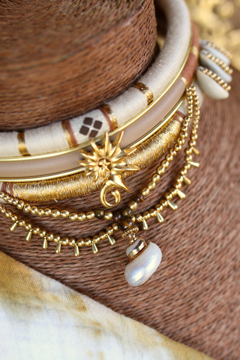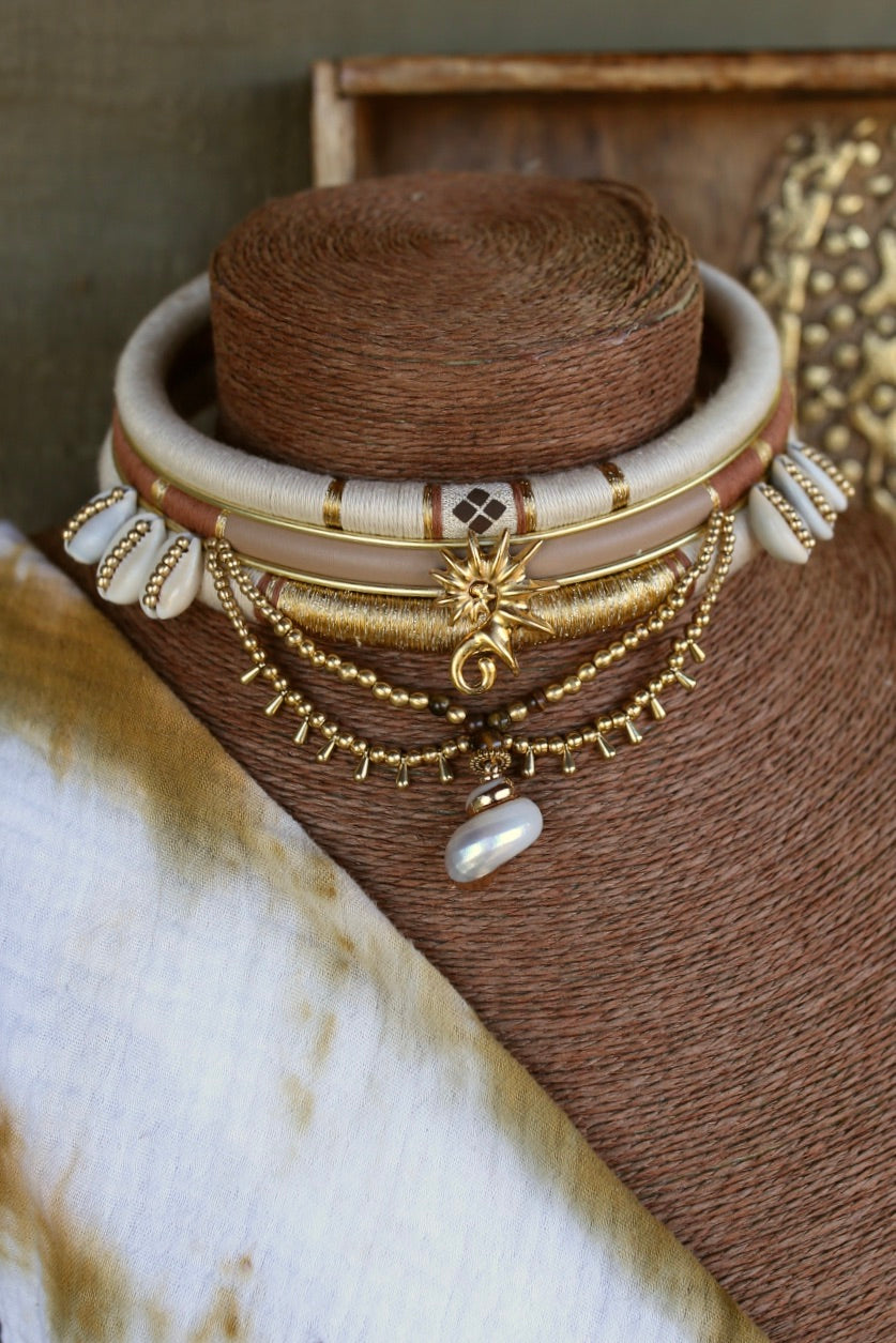 Le collier Soléa est une pièce forte à trois rangs, entièrement amovible.