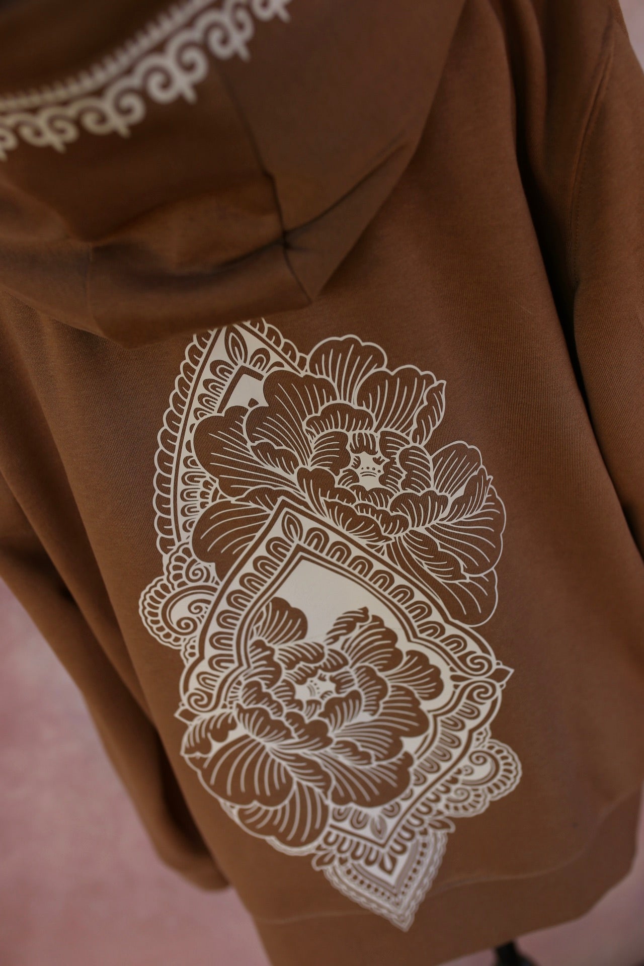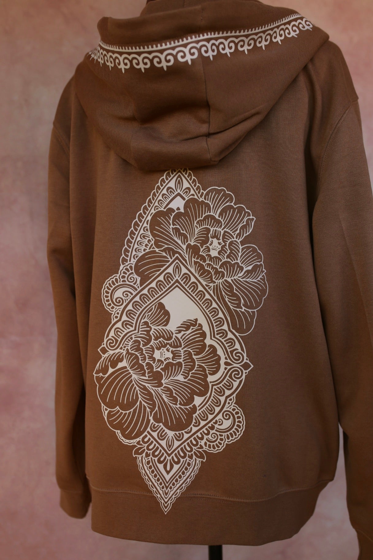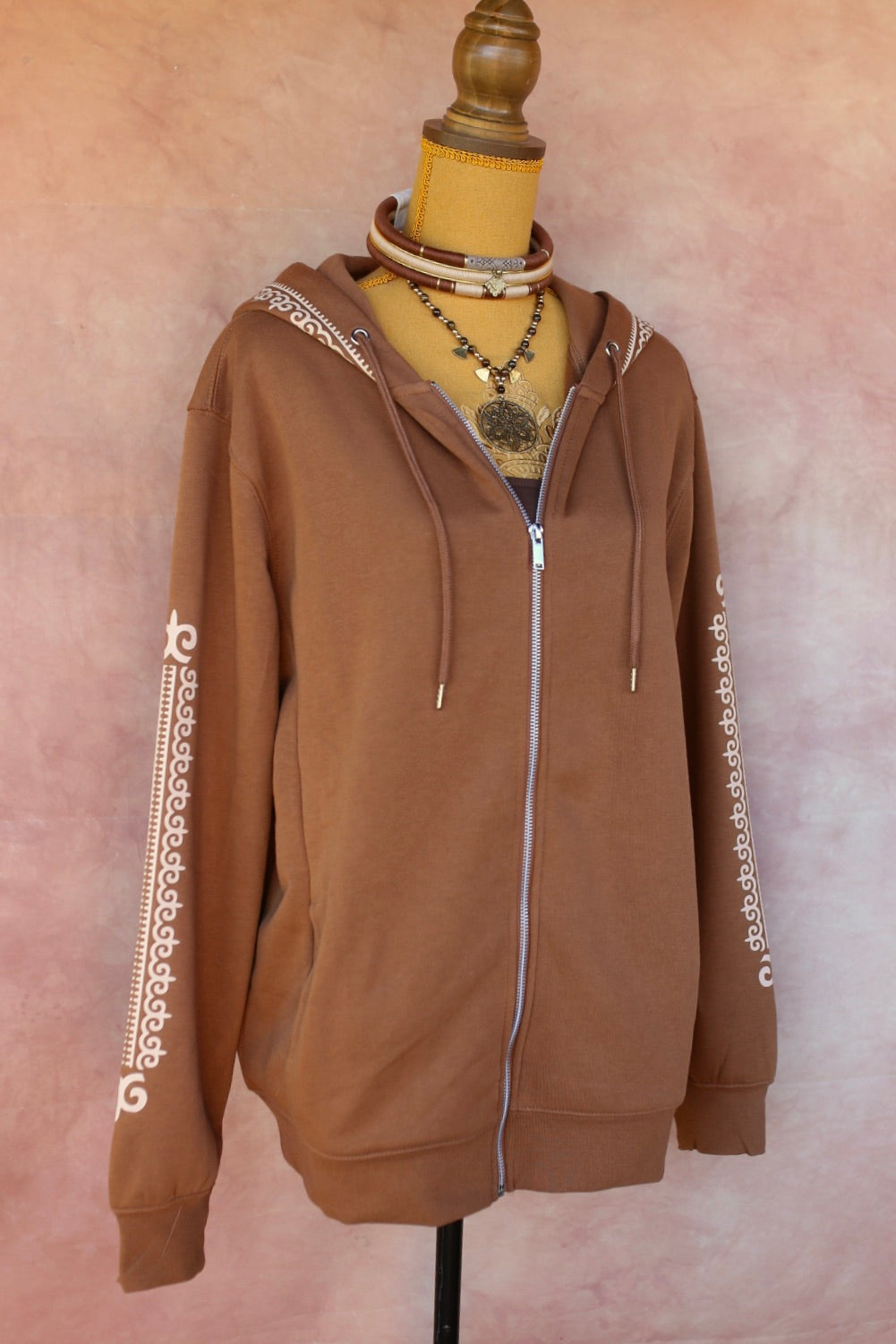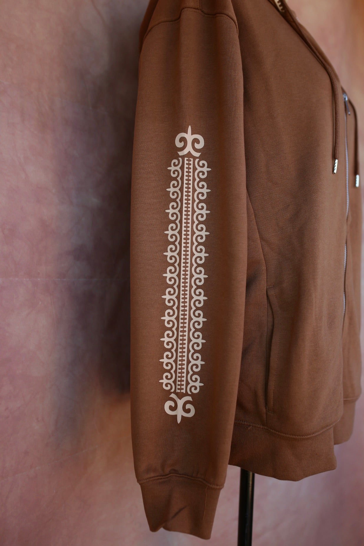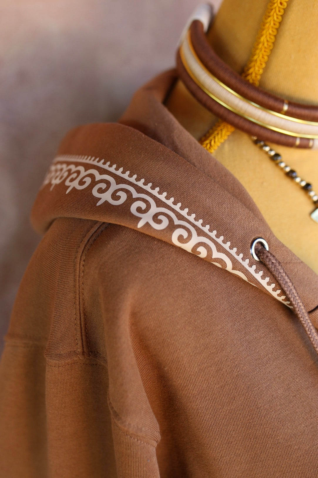 Sweat à Capuche Marron avec Ornement Beige – Design Aavaara