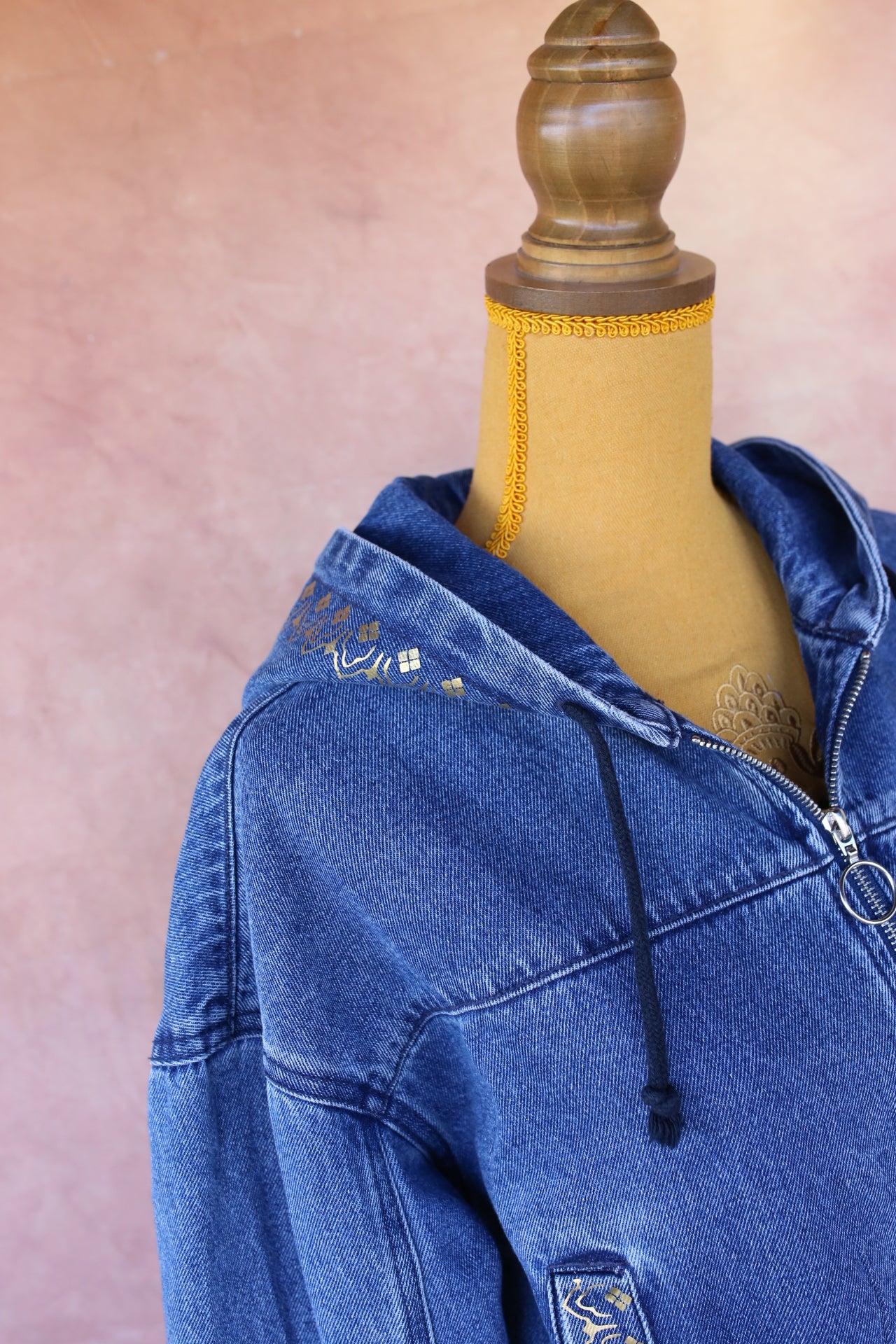 J’ai ajouté des motifs doré uniques sur la veste, avec des ornements dessinés par l'artiste Aavaara, pour lui donner un style original et créatif.