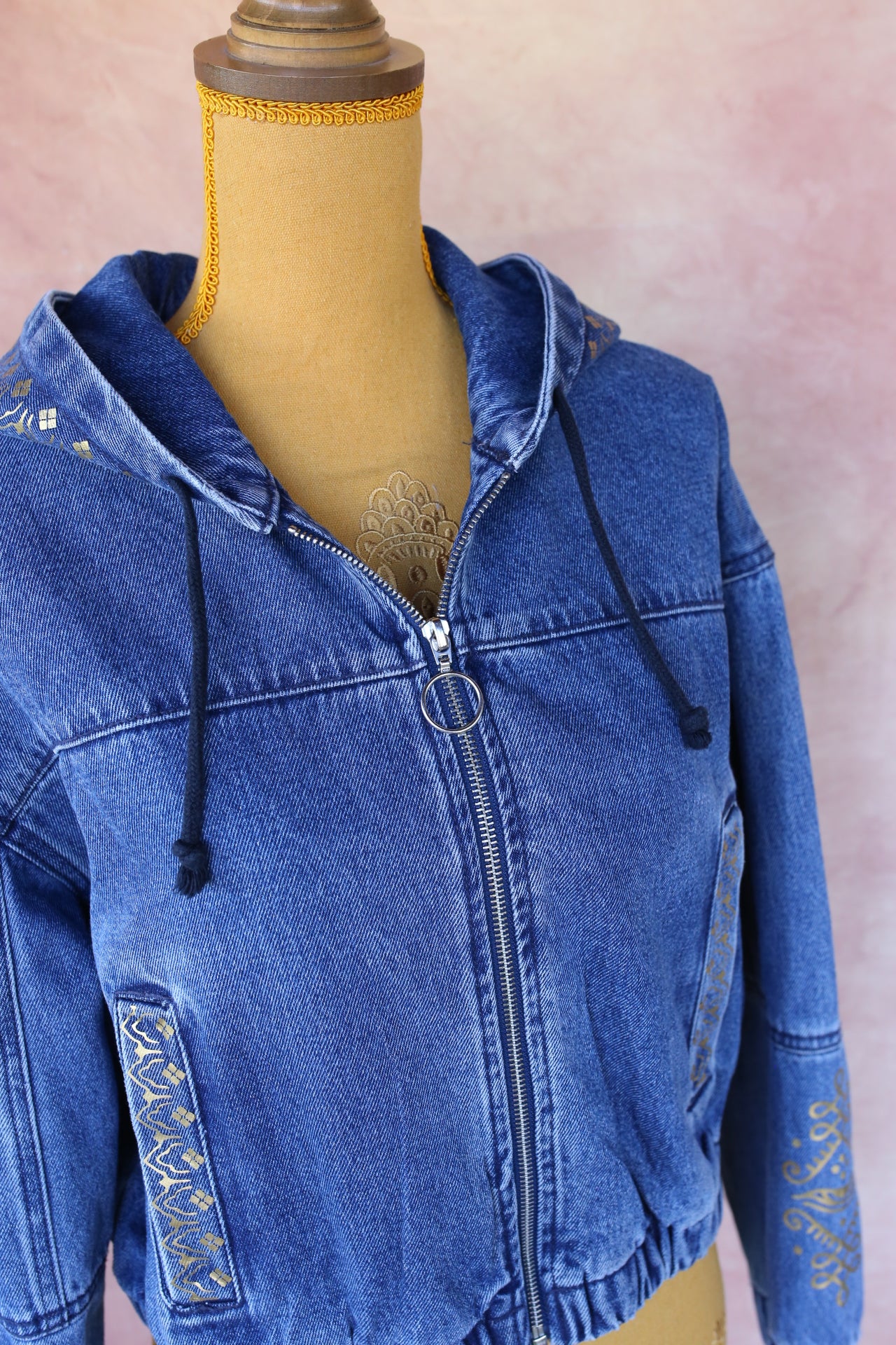 Cette veste en jean de seconde main de taille M offre une coupe loose moderne et confortable. Fabriquée en jean épais, elle est dotée d’une fermeture éclair pratique.